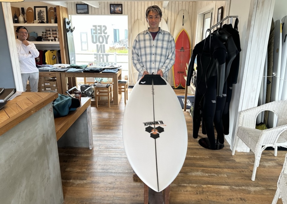 昨年からM23を使い始めて乗れる本数が増えてきた方の次なるニューボードはビッグハッピーの6’4″。
