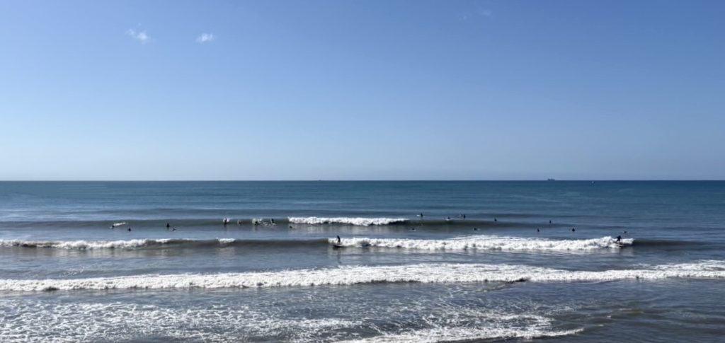 台風一過 2025/09/06 この記事を書いている人 - WRITER - admin 天候回復する土曜日。 弱い東南東の風。 波のサイズはアタマ前後の千葉南。 今日は南からのウネリ。 水温は23度、ウエットスーツはスプリング。 外房は強めのウネリ。 南向きのポイントはゲッティングハードな朝。 様々な波質楽しめる南房総。 今日はどのポイントも長めで浮力の多いボードが活躍してくれるコンディション。 ツインピン 6’1″ この記事を書いている人 - WRITER - admin