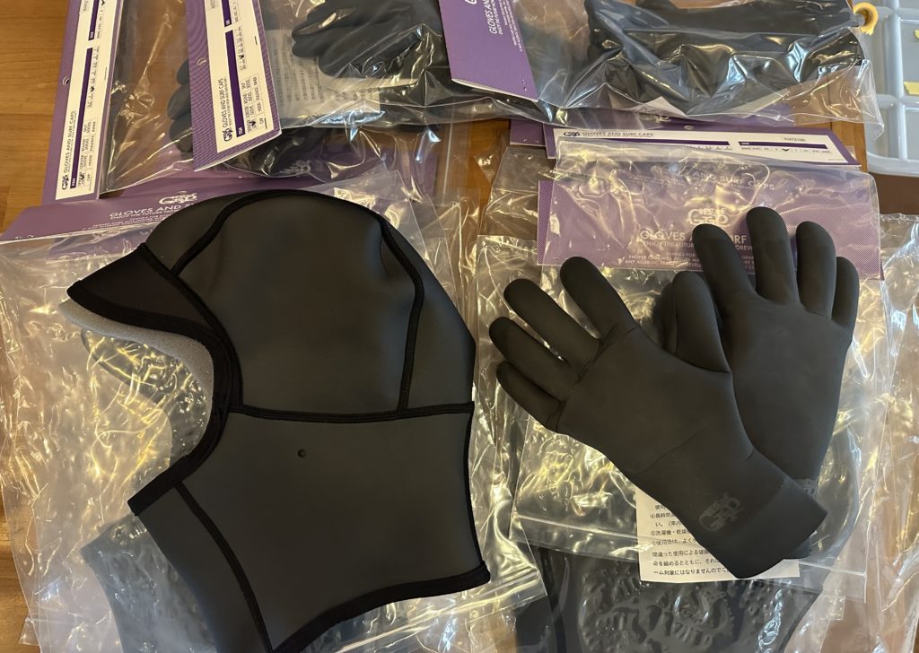ヘッドキャップ、グローブ、ブーツ、各サイズ補充されています。