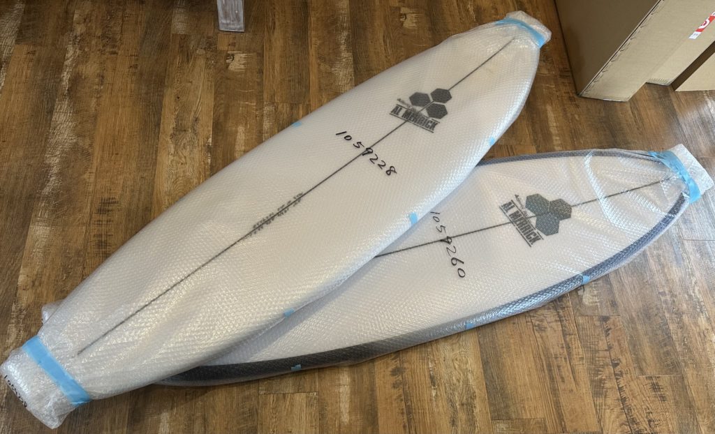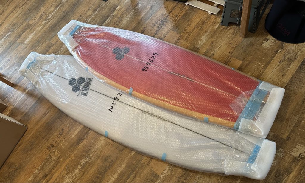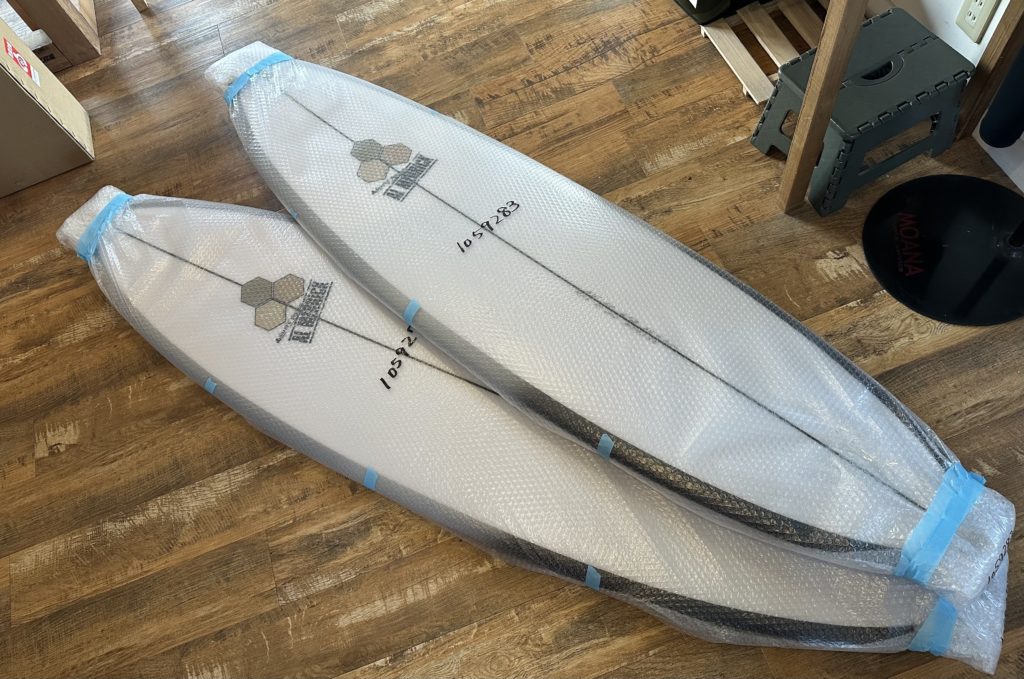 ご注文のサーフボード到着、フェブズフィッシュとM23